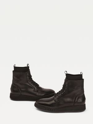 Mercedes Benz Lace Up Leather Sock Boots Black Tommy Hilfiger